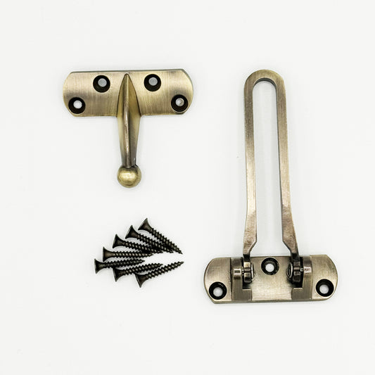 Antique Brass - Hinged Bar Lock for Swing-in Doors, Door Latch Lock Chain – Secondary Security Lock for Door and Security