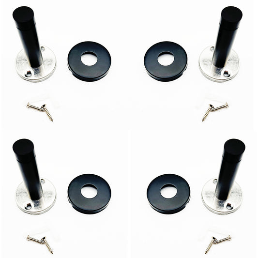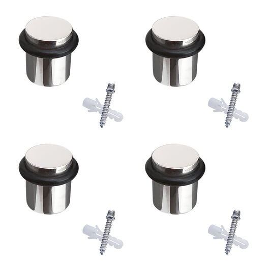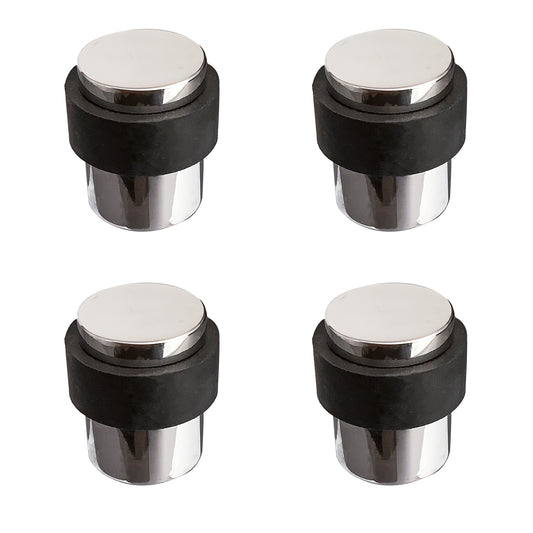 Premium Polished Chrome Door Stop, Thick Rubber (4 Pack)