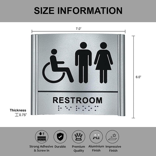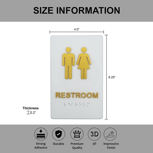 Acrylic 3D Gold Finish Restroom Sign with Braille
