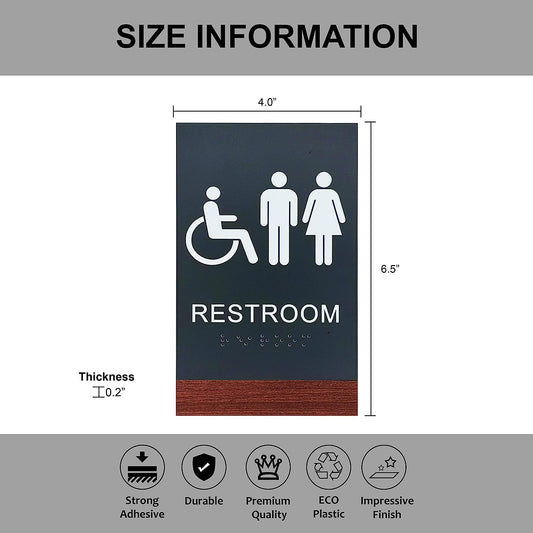 Restroom Toilet Sign - Plastic Black & Wood Accent with Braille